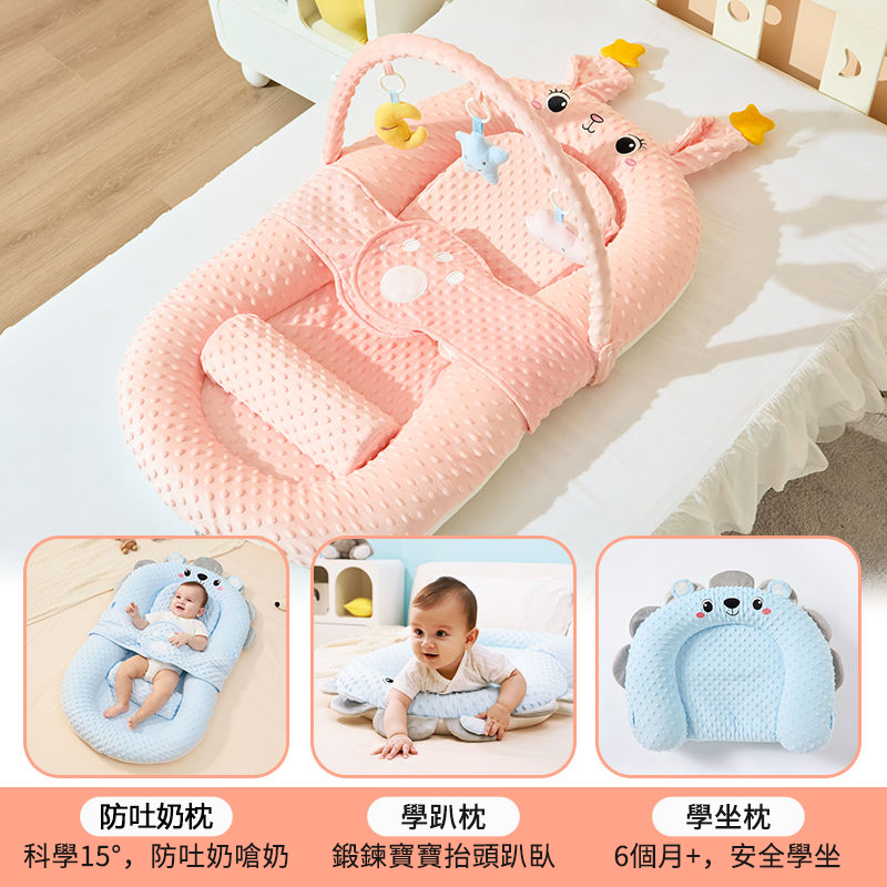 20分鐘前最強哄睡神器,隨著寶寶進階成長【哄睡床-防吐奶枕-學趴著-學坐枕】7A級抗菌嬰兒床中床,陪伴寶寶開心成長 - 【7A級抗菌】普通款【無拍打哄睡】 ---NT$1680